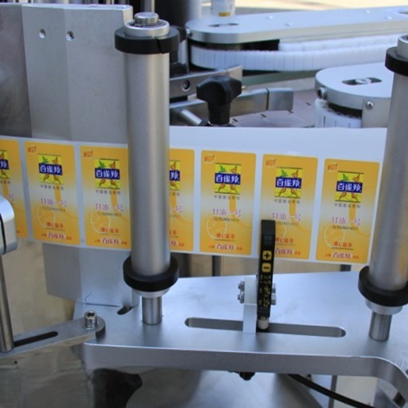 本机设计适合于扁瓶或方瓶的双侧面贴标,可连线生产或单机作业。 特点: 1、伺服马达及驱动器控制出标,PLC可编程控制器 2、本机主要材质采用304不锈钢及铝镁合金制作 3、PLC容易操作且能够迅速调试 4、劳易测透明标签电眼 5、贴标可选配自动进瓶转盘 适用标签高度:10-180mm 适用标签长度:15-250mm 贴标物高度:30-200mm 标签卷尺寸:内径76mm~外径360mm 出標速度:0-30米/ 分钟