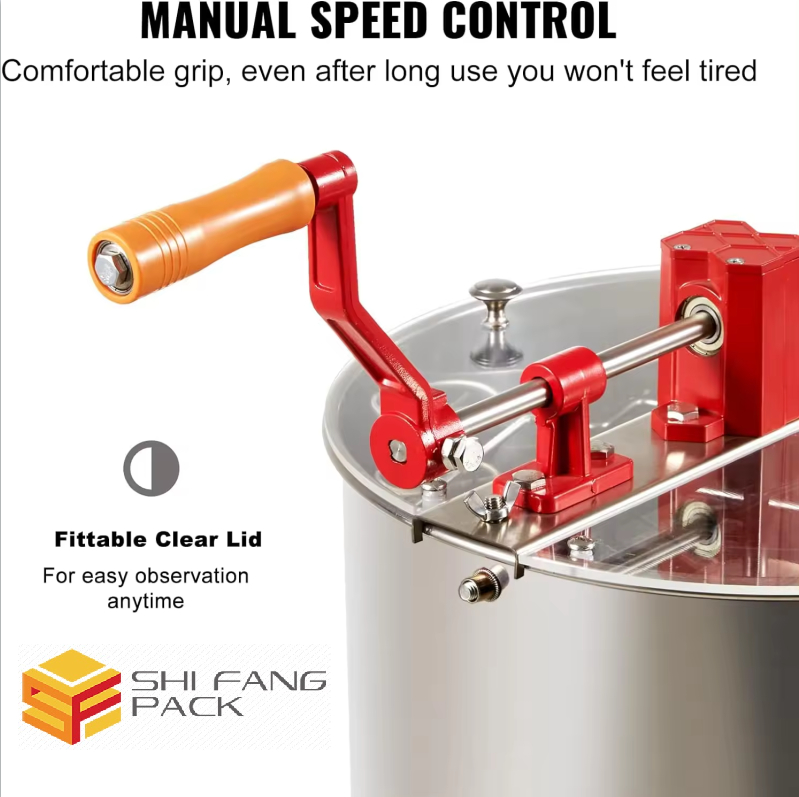 这款手动摇蜜机专为中小型养蜂场和养蜂爱好者设计,是蜂蜜收获过程中不可或缺的核心工具。它采用优质不锈钢材质打造桶身与框架,坚固耐用,抗腐蚀性强,确保食品卫生安全。机器内部配备稳固的蜂巢框支架,可兼容标准尺寸的巢框(通常支持2-6框或更多,具体视型号而定),操作简便。通过手摇驱动,利用平稳的离心力原理,能高效、温和地将蜂蜜从巢脾中甩出,最大程度保留蜂蜜的天然风味与营养成分,同时避免损伤巢脾,方便蜜蜂再次利用。其设计注重实用性与便携性,体积适中,易于清洁和维护,无论是家庭养蜂还是小规模生产,都能显著提升取蜜效率,是您收获甜美劳动成果的理想选择。
